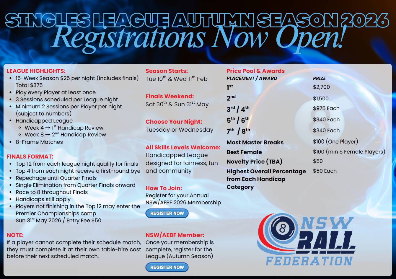 NSW 8 Ball Federation Facebook page link:
